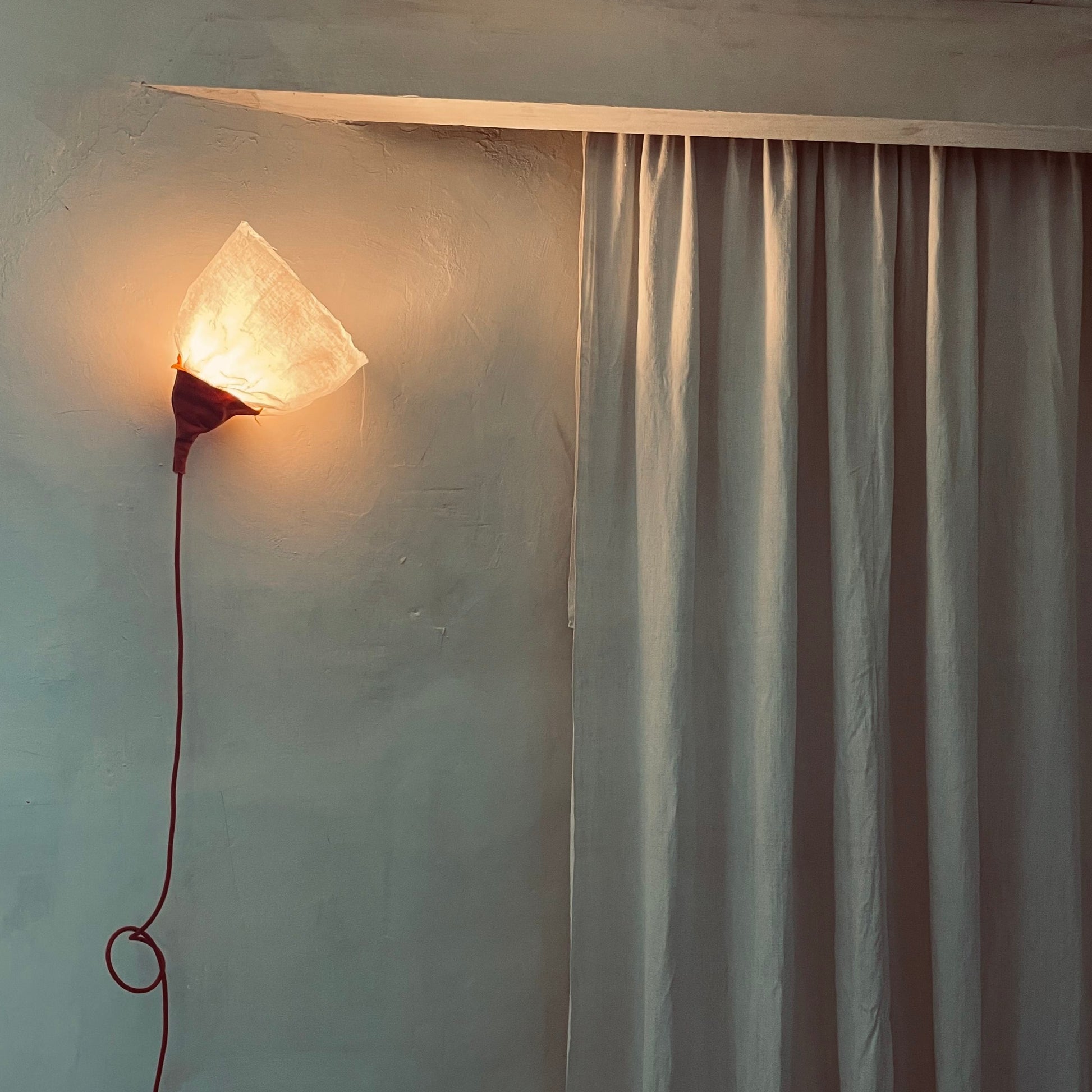 Pantalla de lino encolado. Cáliz de tela de algodón, color teja.