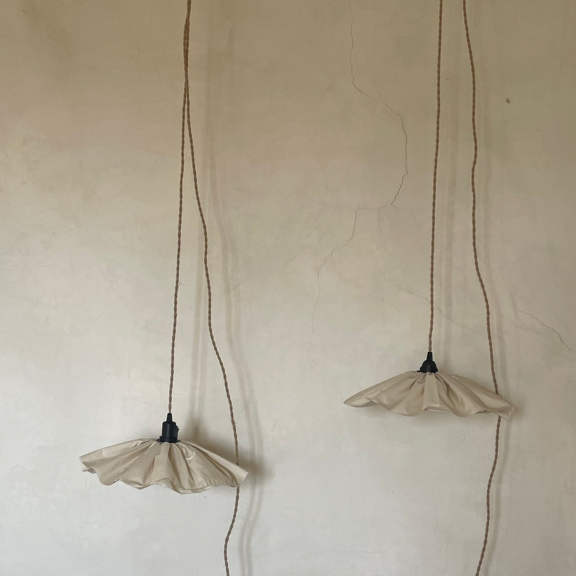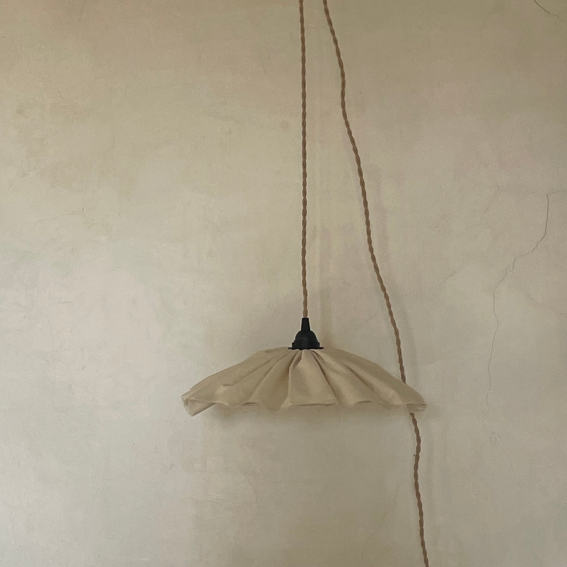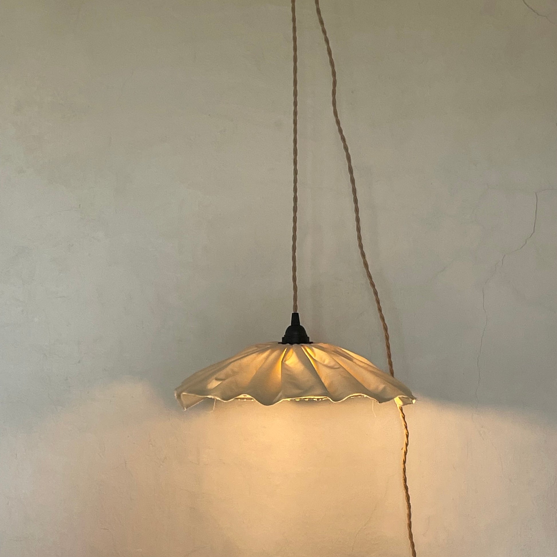 Lámpara colgante. Pantalla fruncida que simula una flor.